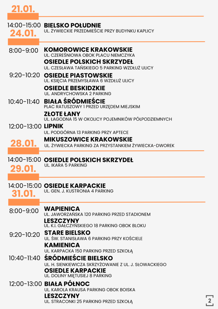 W 2026 roku zbiórki odbywają się w pierwszym półroczu, w sposób systematyczny i powtarzalny, co dwa miesiące, również w dni powszednie. Każda zbiórka trwa jedną godzinę, a odpady przyjmowane są bezpośrednio do podstawionego pojazdu wraz z obsługą.