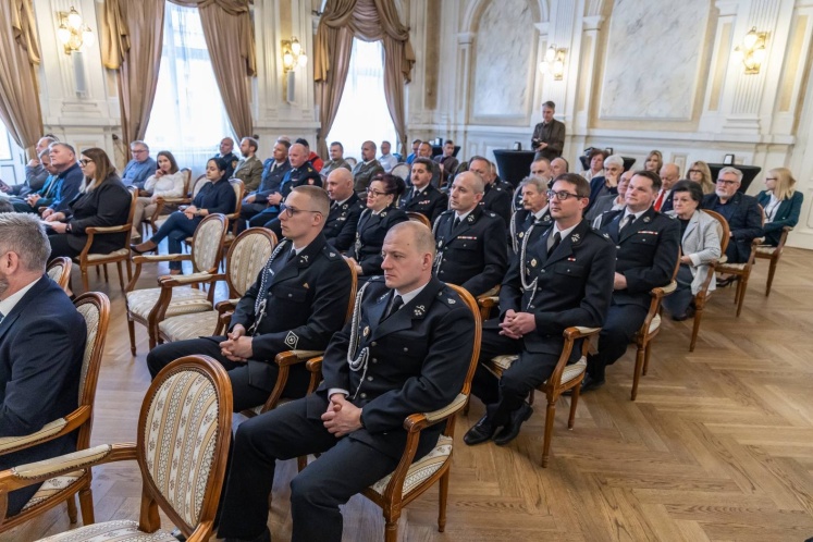 W uroczystości udział wzięli m.in. wojewoda śląski Marek Wójcik, wicewojewoda Adama Zaczkowski, radni Sejmiku Województwa Śląskiego Rafał Ryplewicz i Marcin Szarek, przedstawiciele służb mundurowych i silna delegacja Ochotniczych Straży Pożarnych z terenu miasta.